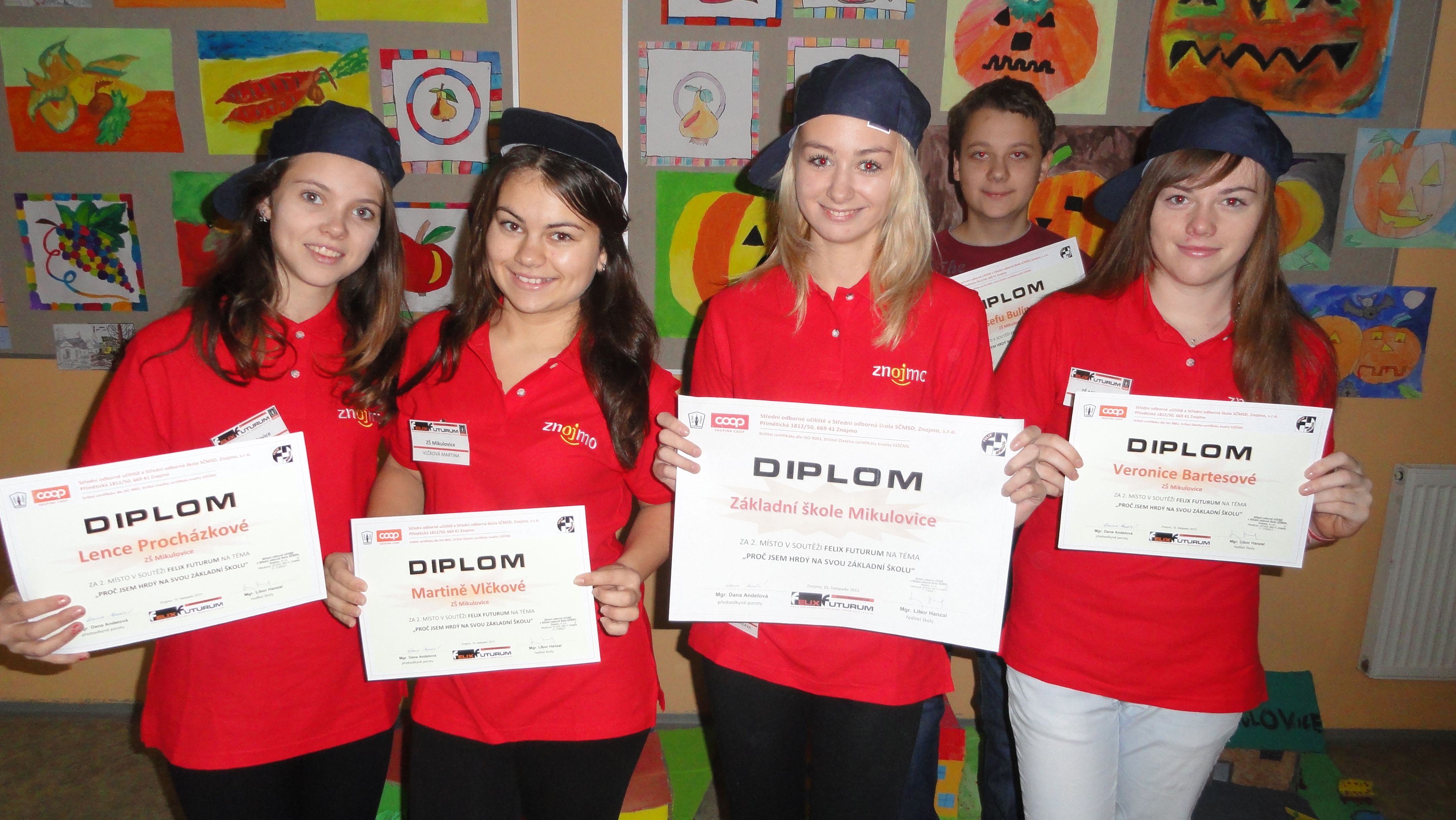 Dne 15. 11. 2012 jsme se zúčastnili projektu s názvem FELIX FUTURUM. Naše téma bylo: Proč jsem hrdý na svou základní školu. Soutěž se konala na SOU a SOŠ Přímětická Znojmo. Prezentace hodnotilo devět porotců, mezi nimi byl i pan místostarosta Znojma Jan Grois. Ve finále jsme soupeřili se šesti školami a získali jsme druhé místo. Projekt nám umožnil získat nejen nové zkušenosti, ale také jsme měli možnost poznat prostředí této školy a ulehčit si rozhodování při volbě školy do budoucna. Měli jsme zajištěno občerstvení ve školní restauraci, zejména oběd byl velice dobrý. Zhlédli jsme spoustu cizích prezentací a to nám rozšířilo obzory. Dokonce jsme navštívili školní bar, kde bylo pro soutěžící vše zdarma. Bylo to velmi zdařilé dopoledne.J