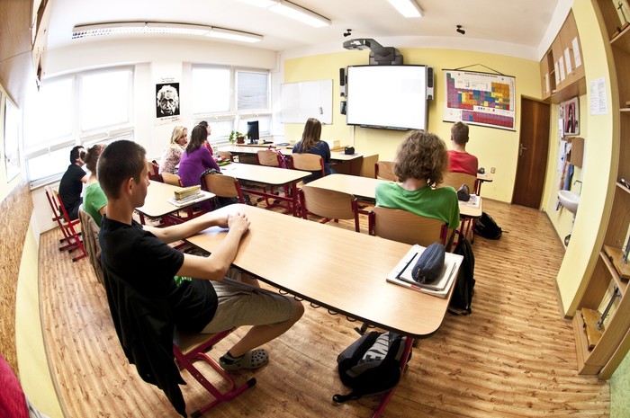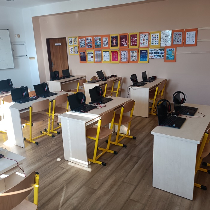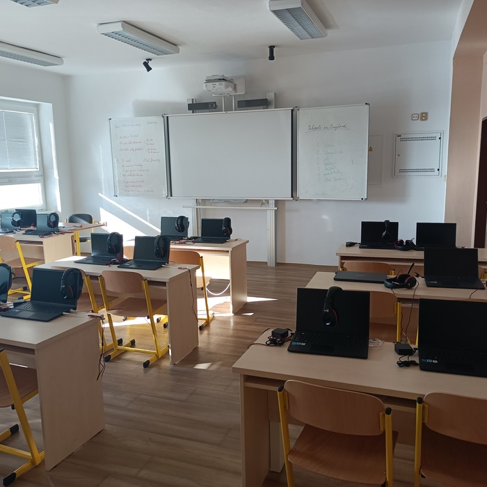 Kliknutím na libovolný obrázek a následným spuštěným tlačítka PLAY (vlevo dole) se spustí prohlídka školy automaticky.